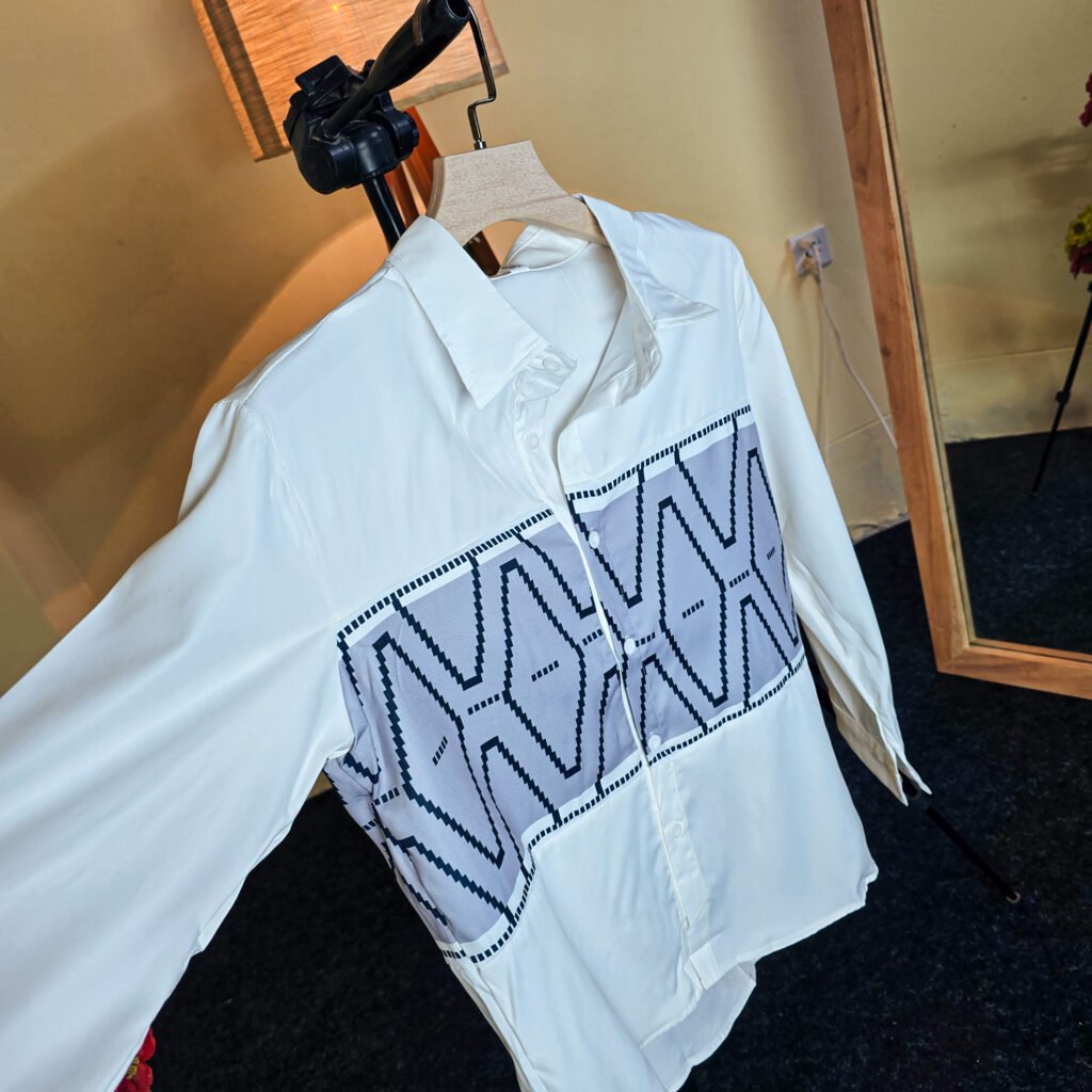 LV Patterned Designer Shirt – Olive & Navy Edition
