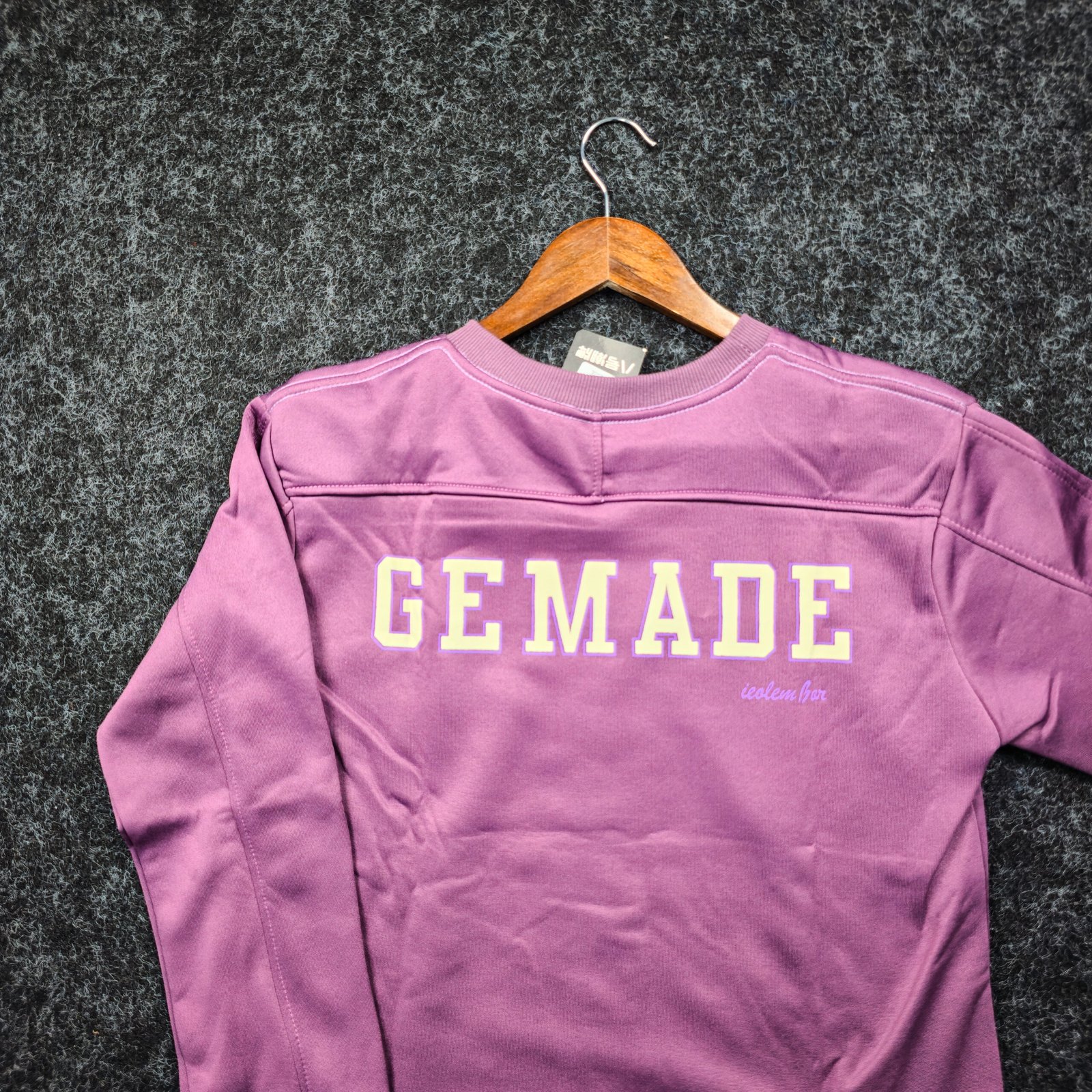 • Embroidered varsity “GEMADE” lettering