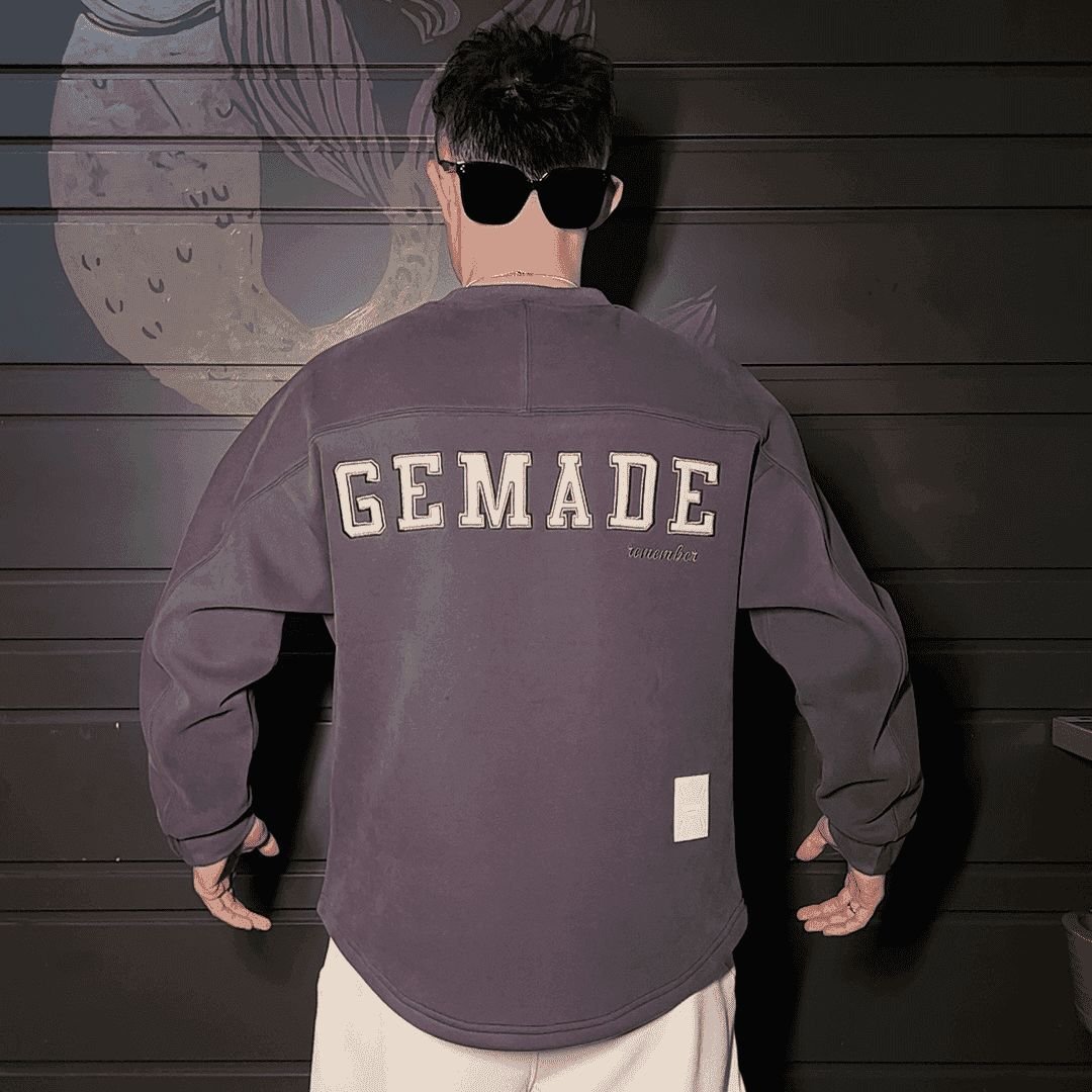 The Gemade Vintage Oversized Sweatshirt blends classic varsity charm with a modern streetwear silhouette. Crafted from soft premium fleece, it offers exceptional warmth and comfort for cooler days. The bold “GEMADE” applique across the back adds a standout collegiate touch, while the subtle “remember” embroidery brings a minimalist aesthetic. Its relaxed drop-shoulder fit, ribbed crew neck, and curved hemline make it ideal for casual layering or effortless everyday wear.