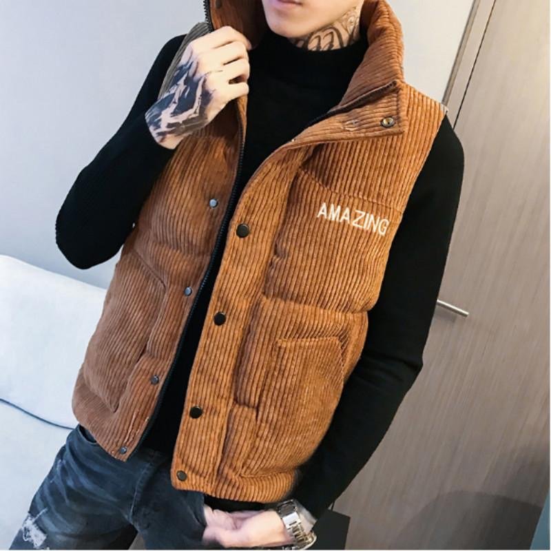Stylish corduroy puffer vest for men — warm, trendy, and perfect for streetwear layering this winter.