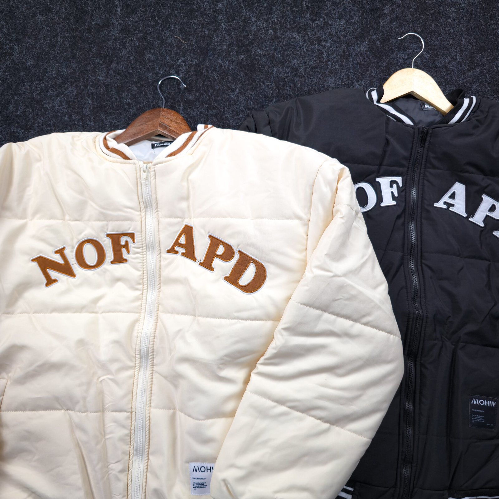 Be the first to review “Men’s Cream Varsity Puffer Jacket with Bold Lettering”